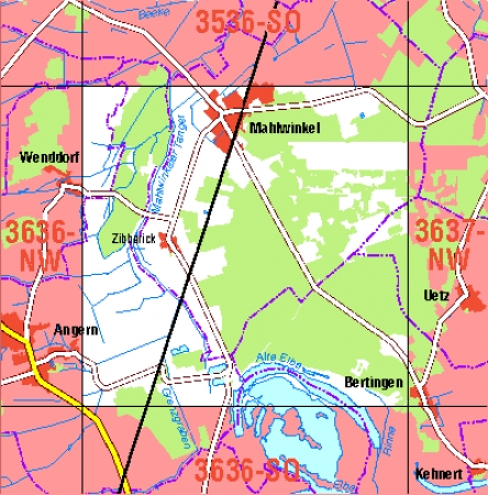 Maßstab 1:10 000, Nomenklatur: 3636-NO, Name des Kartenblatts: Mahlwinkel, Auflagejahr: 2022, Blattschnitt: Normalblattschnitt (Preußische Landesaufnahme), Gradabteilungskarte mit 5 min geographischer Länge und 3 min geographischer Breite, Geodätischer Raumbezug: GRS80-Ellipsoid, ...