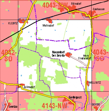 Maßstab 1:10 000, Nomenklatur: 4043-SW, Name des Kartenblatts: Mellnitz, Auflagejahr: 2023, Blattschnitt: Normalblattschnitt (Preußische Landesaufnahme), Gradabteilungskarte mit 5 min geographischer Länge und 3 min geographischer Breite, Geodätischer Raumbezug: GRS80-Ellipsoid, ...