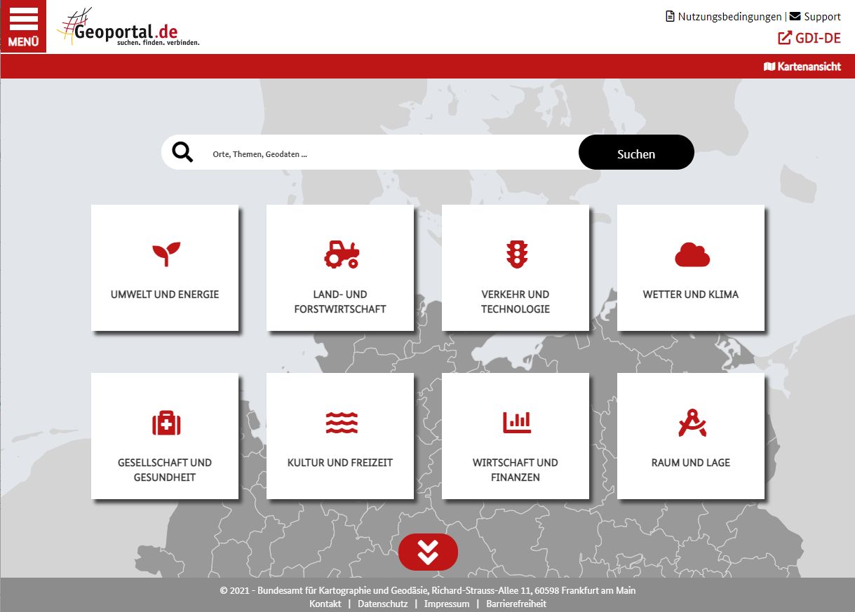 Ob zum Suchen und Auffinden, Verknüpfen oder Teilen, mit der Neuauflage des Geoportal.de ist der Zugang zu Geoinformationen jetzt noch einfacher und komfortabler. Die Betreiber des Geoportal.de, die Geodateninfrastruktur Deutschland (GDI-DE) und das Bundesamt für Kartographie und Geodäsie (BKG) präsentieren mit der Version 2.0 des Geoportal.de über 300.000 Geodaten des Bundes, der Länder und der Kommunen.
