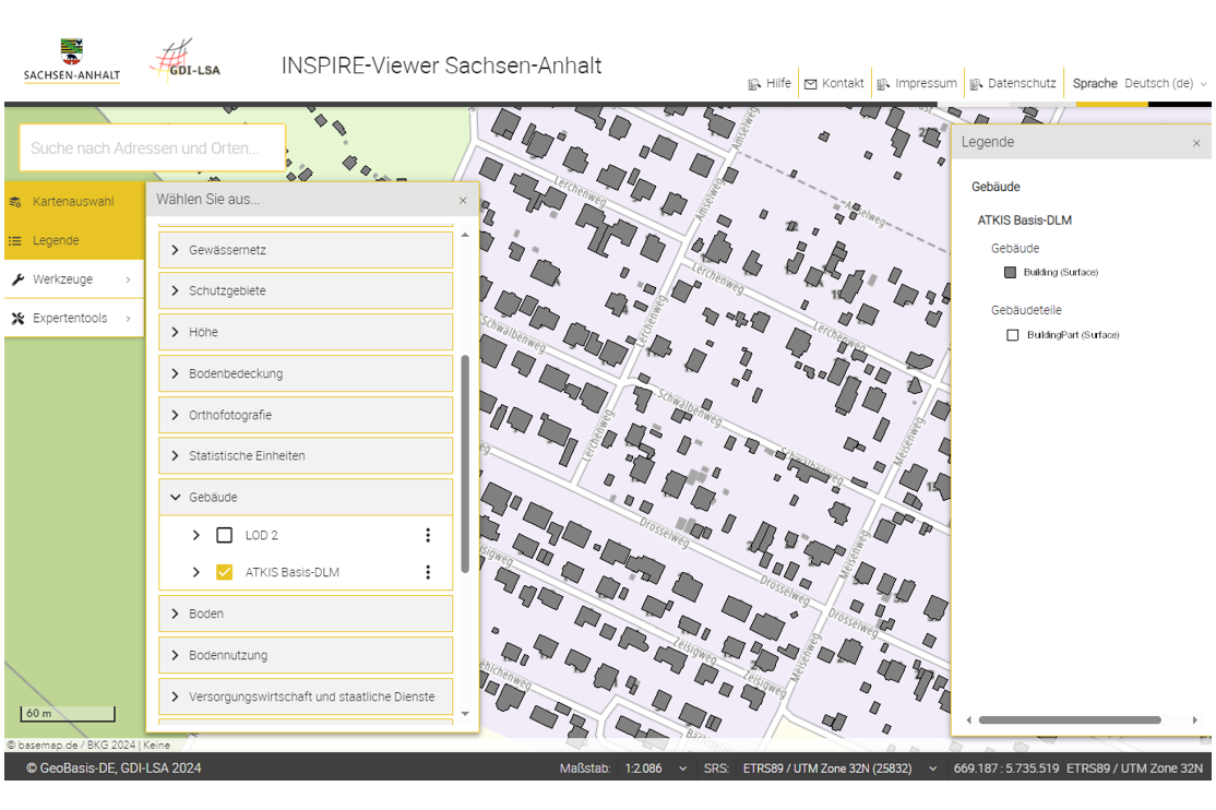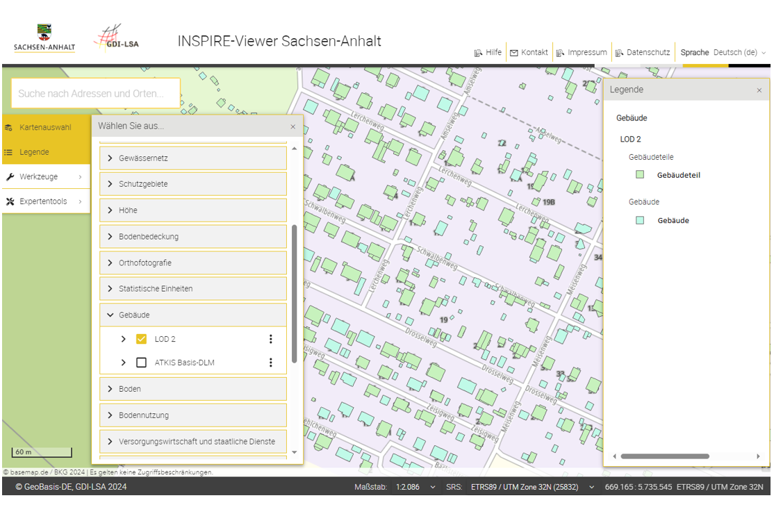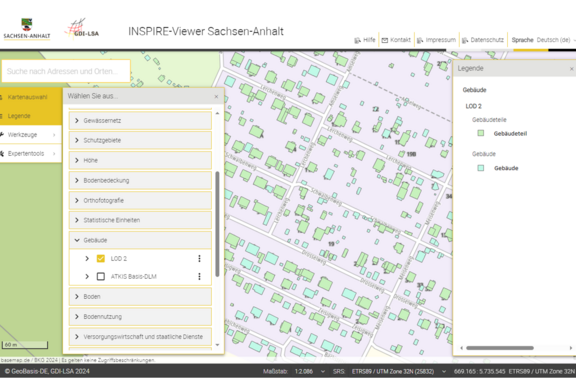 Der INSPIRE-Viewer des Landes Sachsen-Anhalt präsentiert seit 2019 sukzessive alle Geodatensätze, die gemäß der INSPIRE-Richtlinie und dem GDIG LSA als INSPIRE-relevant identifiziert und als interoperabel im jeweiligen INSPIRE-Datenmodell vorliegen.