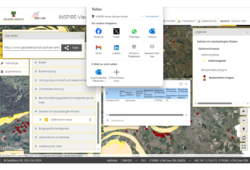 Der INSPIRE-Viewer hat eine weitere interessante Funktionalität. Unter dem Menüpunkt „Werkzeuge“ können mit „App teilen“ die vorgenommenen Karteneinstellungen 1:1 – als sogenannter permanenter Link – gespeichert und per E-Mail oder in sozialen Medien geteilt werden (Abb. 11).