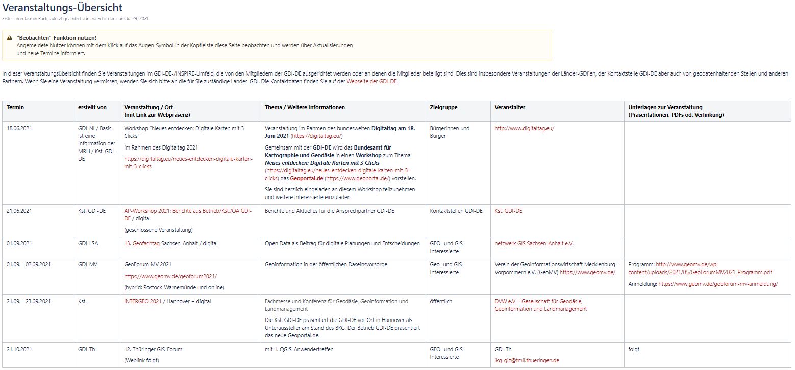 Neue Veranstaltungsübersicht im GDI-DE Wiki