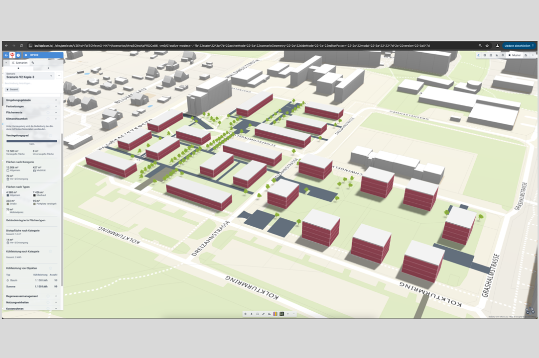 Drei Module bilden das Herzstück des HAL-Plans: Das Planungstool ermöglicht fundierte Szenarienanalysen – beispielsweise durch Schattenberechnungen, Baukostenkalkulationen oder Prüfungen zum Baurecht für neu angelegte Planungen. Das Ökologietool analysiert auf Basis der gezeichneten Planungen Umweltfaktoren und unterstützt bei der Entwicklung nachhaltiger Strategien durch Simulationen zum thermischen Komfort, Niederschlags-, Wind- und Lärmsimulationen. Das Gewerbeflächentool visualisiert und verwaltet Gewerbe- und Immobilienangebote effizient.