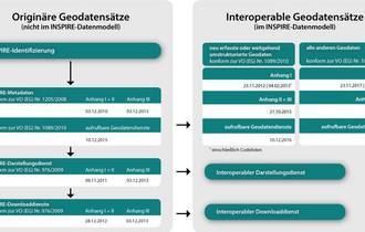 Die Abbildung verdeutlicht die Umsetzung des INSPIRE-Zeitplans für die Bereitstellung von Geodatensätzen und –diensten.