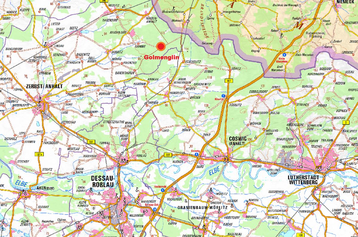Die Kalibrierstrecke befindet sich in Golmenglin und hat eine Gesamtlänge von 1850 m. Sie besteht aus neun Pfeilern, die bis zum Pfeiler 6 (1010 m) nach dem Schwendener Typ und anschließend nach der Teilstreckenmethode angeordnet sind. Eine Kalibrierung ist über sechs bzw. neun Pfeiler möglich und richtet sich nach den durchschnittlichen Entfernungen bei den Messungen in der Praxis.