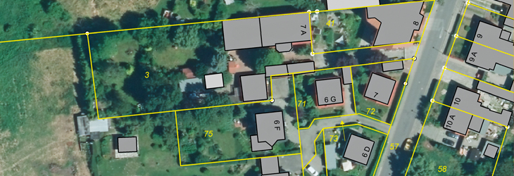 Hinterlegt werden dabei aktuelle Digitale Orthophotos in einer Bodenauflösung von 20 cm (DOP20). Das Orthophoto wird farbig (RGB), der Gebäudebestand in Grautönen und die Liegenschaftsgrenzen ausschließlich in der Farbe Gelb visualisiert. Die Datenabgabe erfolgt in analoger Form oder als PDF-Format.
