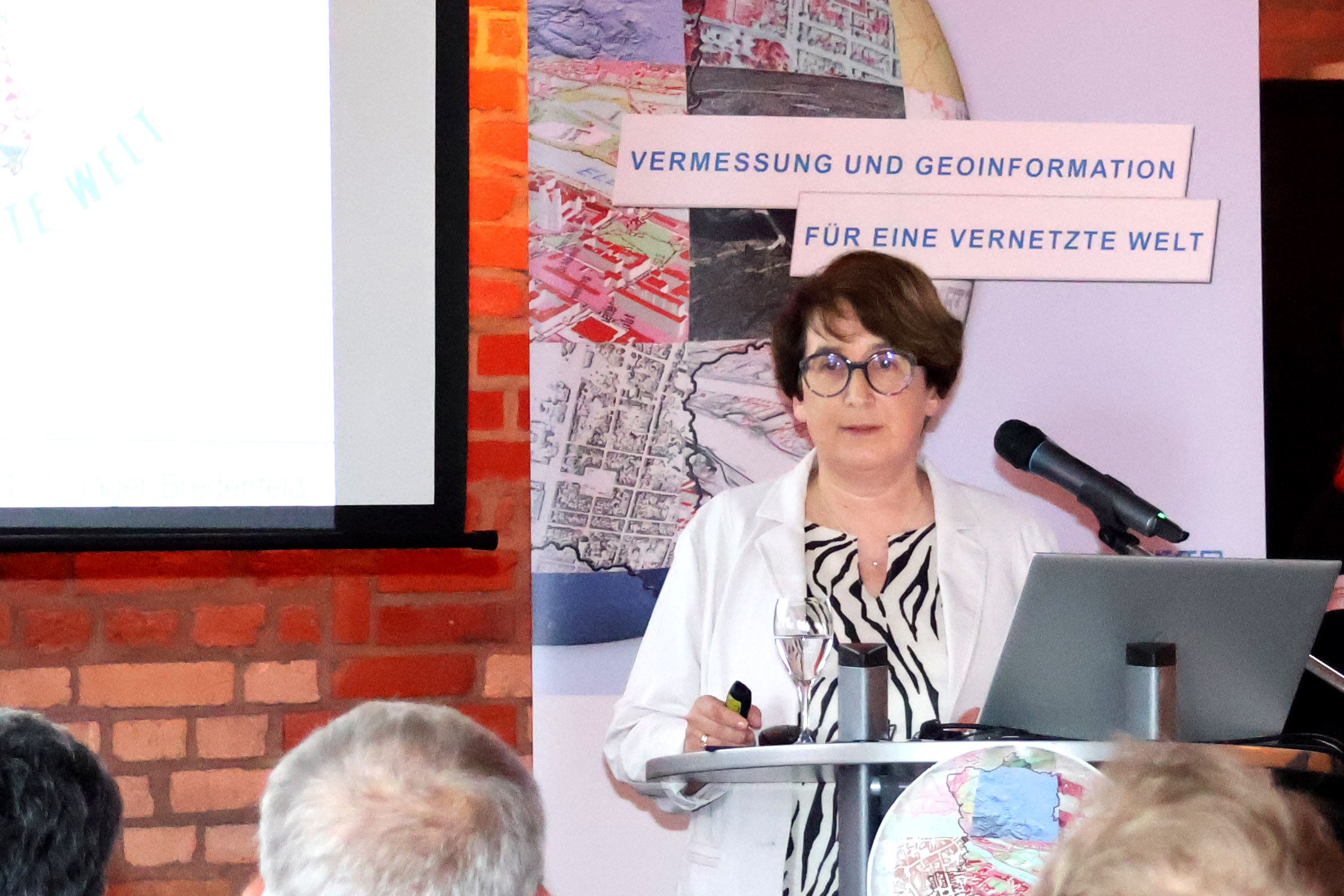 In ihrem anschließenden Vortrag „20 Jahre LVermGeo – weiter unterwegs in eine vernetzte Welt“ betonte die Präsidentin des LVermGeo, Cordula Jäger-Bredenfeld, die Schlüsselressource von Geobasisdaten in unserer digitalen Gesellschaft und den damit verbundenen Aufgaben im Geoinformationswesen.