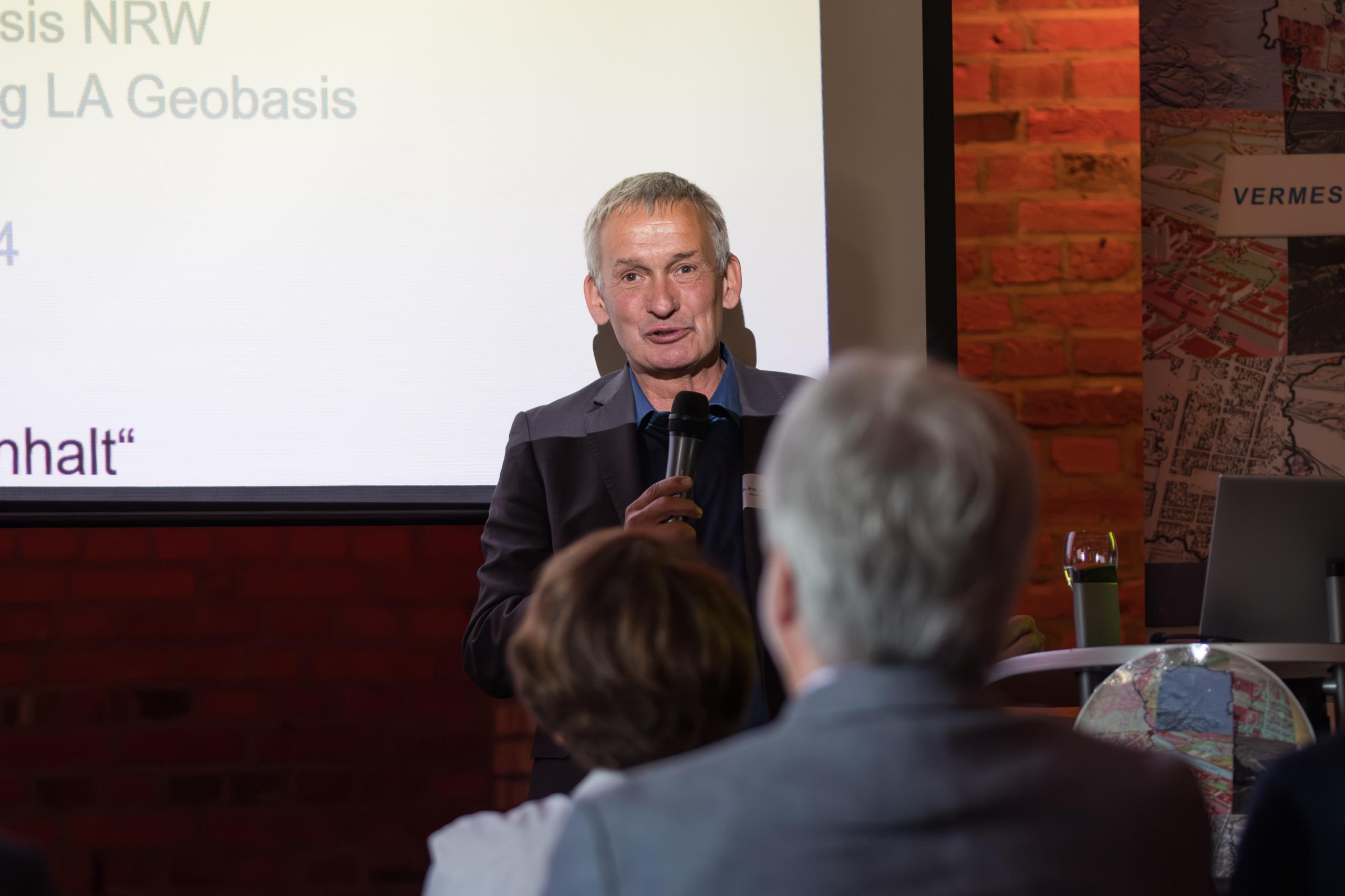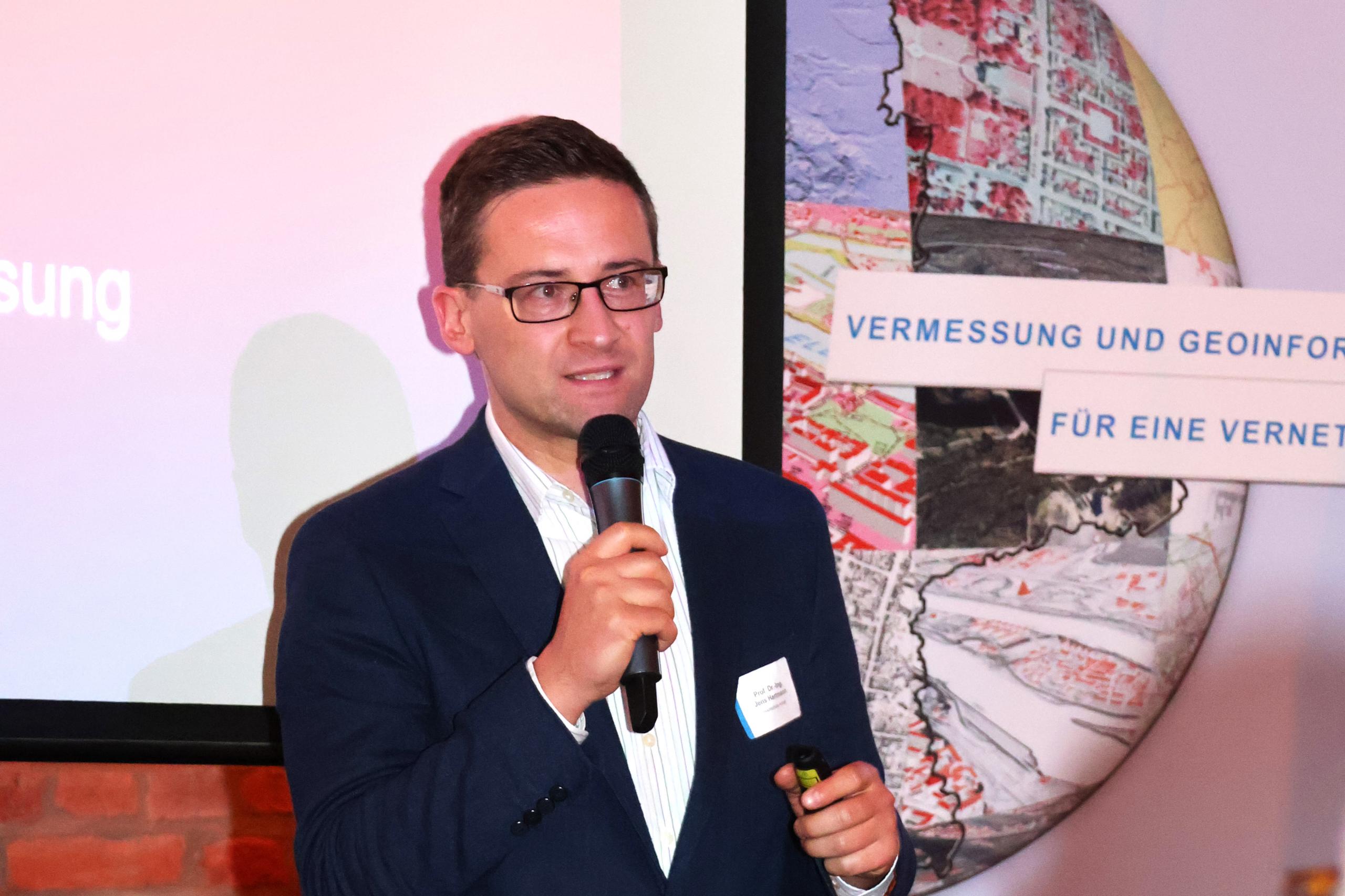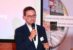 Herr Dr.-Ing. Jens Riecken, stellvertretender Vorsitzender des Lenkungsausschusses Geobasis, erläuterte, wie der technologische Wandel die Geodäsie über die Jahre verändert hat und welche Bedeutung der Digitalisierung sowie der kontinuierlichen Weiterentwicklung in diesem technikaffinen Bereich zukommt.