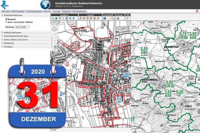 Bodenrichtwerte mit Stichtag 31.12.2020 im Geodatendienst verfügbar