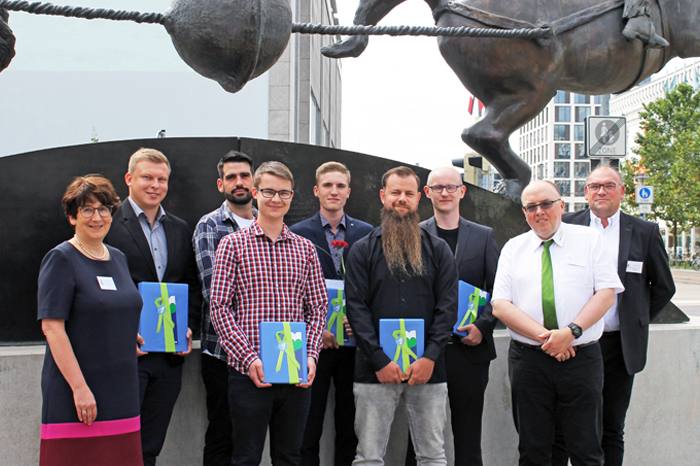 Aus der Sommerprüfung 2021 wurden die beiden Vermessungstechniker Herr Marek Michaelis (Jaeger Spezial- und Tiefbau GmbH + Co KG) und Herr Christian Hirschfeld (Landeshauptstadt Magdeburg) ausgezeichnet, bei den Geomatikern waren dies Herr Philipp Bechtloff (imp GmbH) und Herr Conni Kern (LVermGeo).