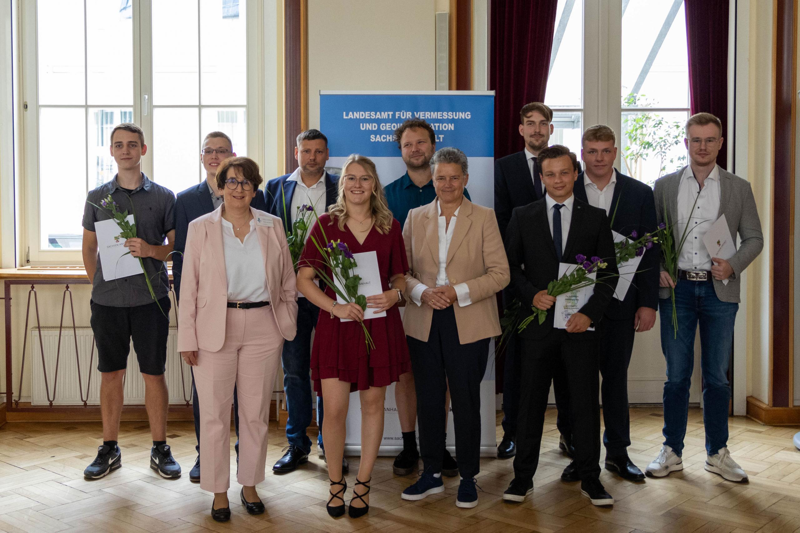 Zum 27.07.2024 übernahm das Landesamt für Vermessung und Geoinformation (LVermGeo) alle neun Auszubildende, die ihre Ausbildung 2024 im LVermGeo erfolgreich absolviert haben.