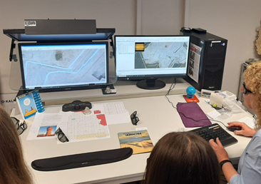 Nach einer kurzen Begrüßung wurden sie in Kleingruppen aufgeteilt und von Auszubildenden zu den verschiedenen Stationen geführt. An insgesamt sieben unterschiedlichen Stationen vermittelten Mitarbeitende des LVermGeo ihnen praxisnahe Einblicke in ihren Berufsalltag.