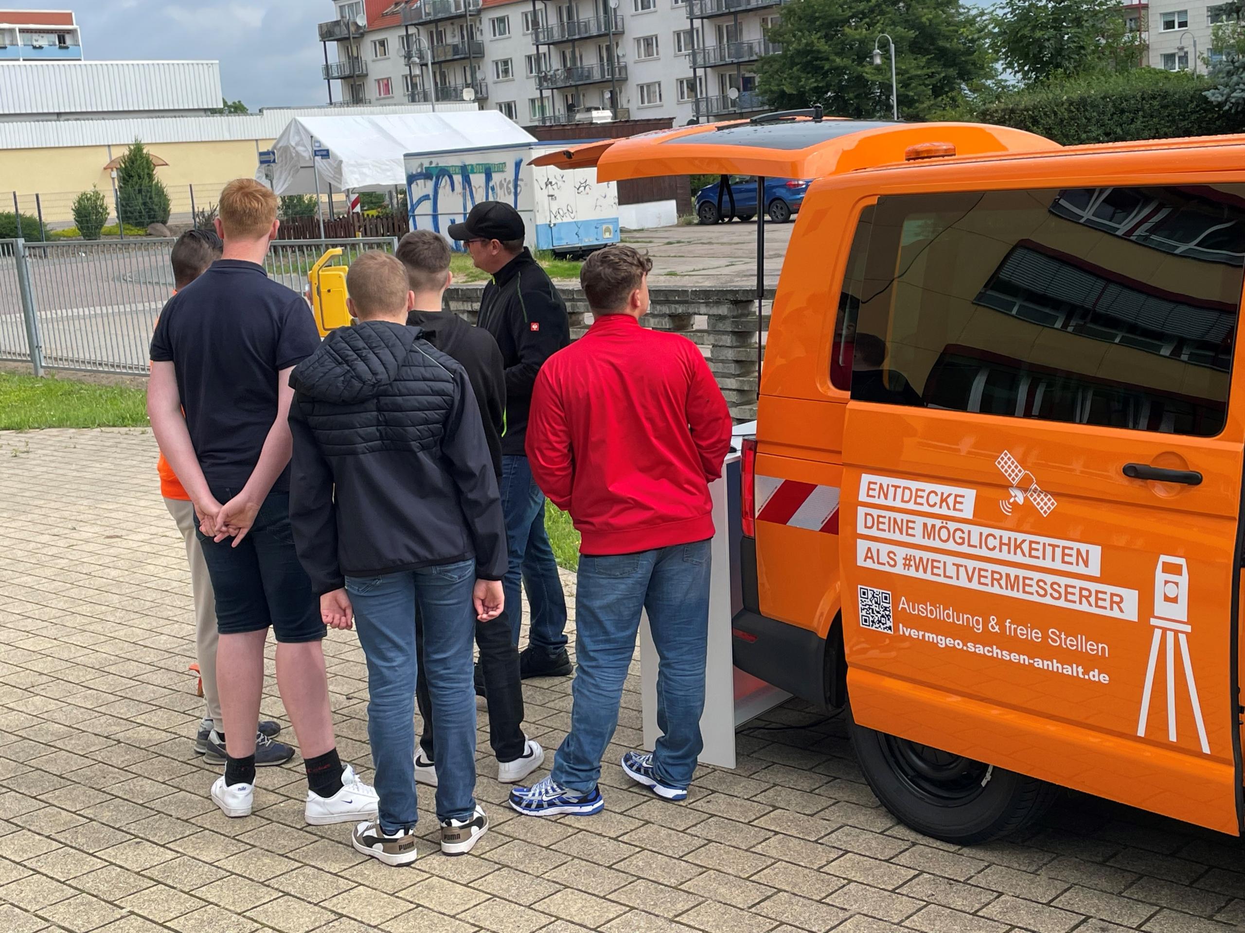So bringen wir den Schülerinnen und Schülern den Beruf des Geomatikers (m/w/d) bzw. Geoinformatikers näher und zeigen ihnen weitere Zukunftsmöglichkeiten im LVermGeo auf. Neben der Ausbildung bietet das LVermGeo in Kooperation mit der Hochschule Anhalt den dualen Bachelor- und Masterstudiengang Vermessung und Geoinformatik (B.Eng. /M.Eng.) sowie den Vorbereitungsdienst des technischen Verwaltungsdienstes der Fachrichtung Geodäsie und Geoinformation und das Technische Referendariat an.