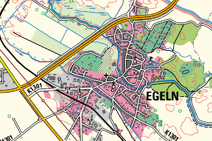 Im Gegensatz zur bisherigen reduzierten Einzelhausdarstellung in Kombination mit der Flächendarstellung von bebauten Flächen erfolgt nunmehr eine generalisierte Gebäudedarstellung, welche den aktuellen Gebäudebestand des Liegenschaftskatasters nutzt.