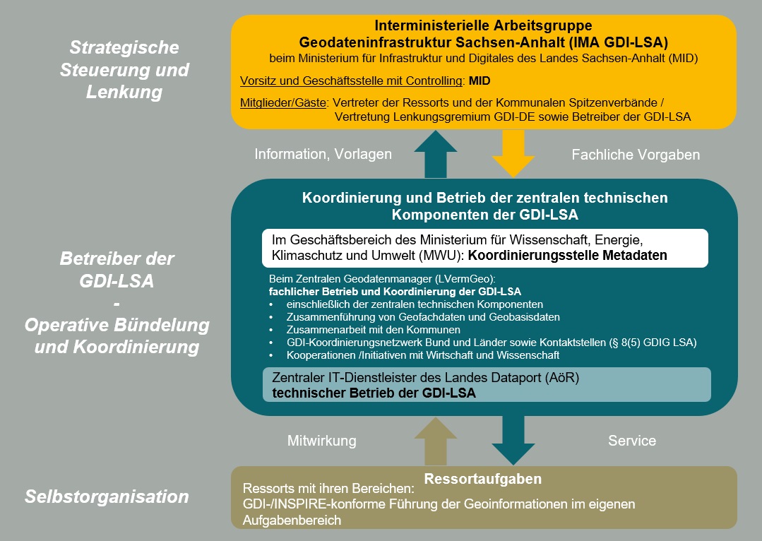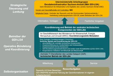 Die GDI-LSA stellt den geodatenhaltenden Stellen und Anwendern von Geodaten bestimmte Servicefunktionen in Form von zentralen technischen Komponenten (siehe Abbildung) zur Unterstützung bei der Bereitstellung ihrer Geodatenressourcen zur Verfügung.